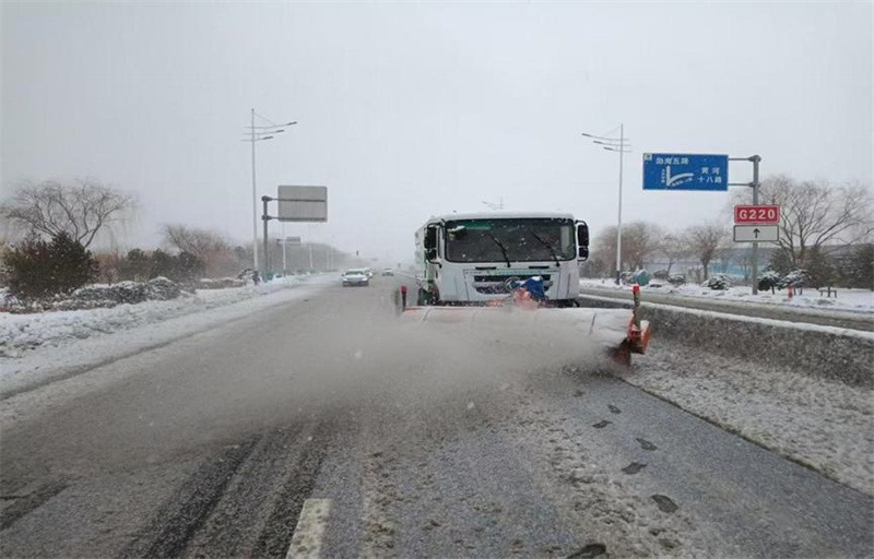 降雪后,按照“雪隨下隨清”的原則,待命隊員迅速行動,在包保路段通過滾刷鏟雪、撒布融雪劑、人工清掃等方式循環(huán)作業(yè),高效開展除雪工作。